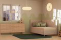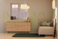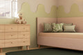 w odcieniu beżowym z delikatnym połyskiem. Jego miękka konstrukcja oraz tapicerowane ścianki ochronne (za głową i po jednej stronie) zapewniają komfort i bezpieczeństwo snu. Praktyczny pojemnik na pościel otwierany od frontu unosi się do góry, oferując maksymalną przestrzeń przechowywania pod całą powierzchnią materaca. Idealne połączenie stylu, wygody i funkcjonalności – stworzone z myślą o przytulnym wnętrzu pokoju dziecięcego.