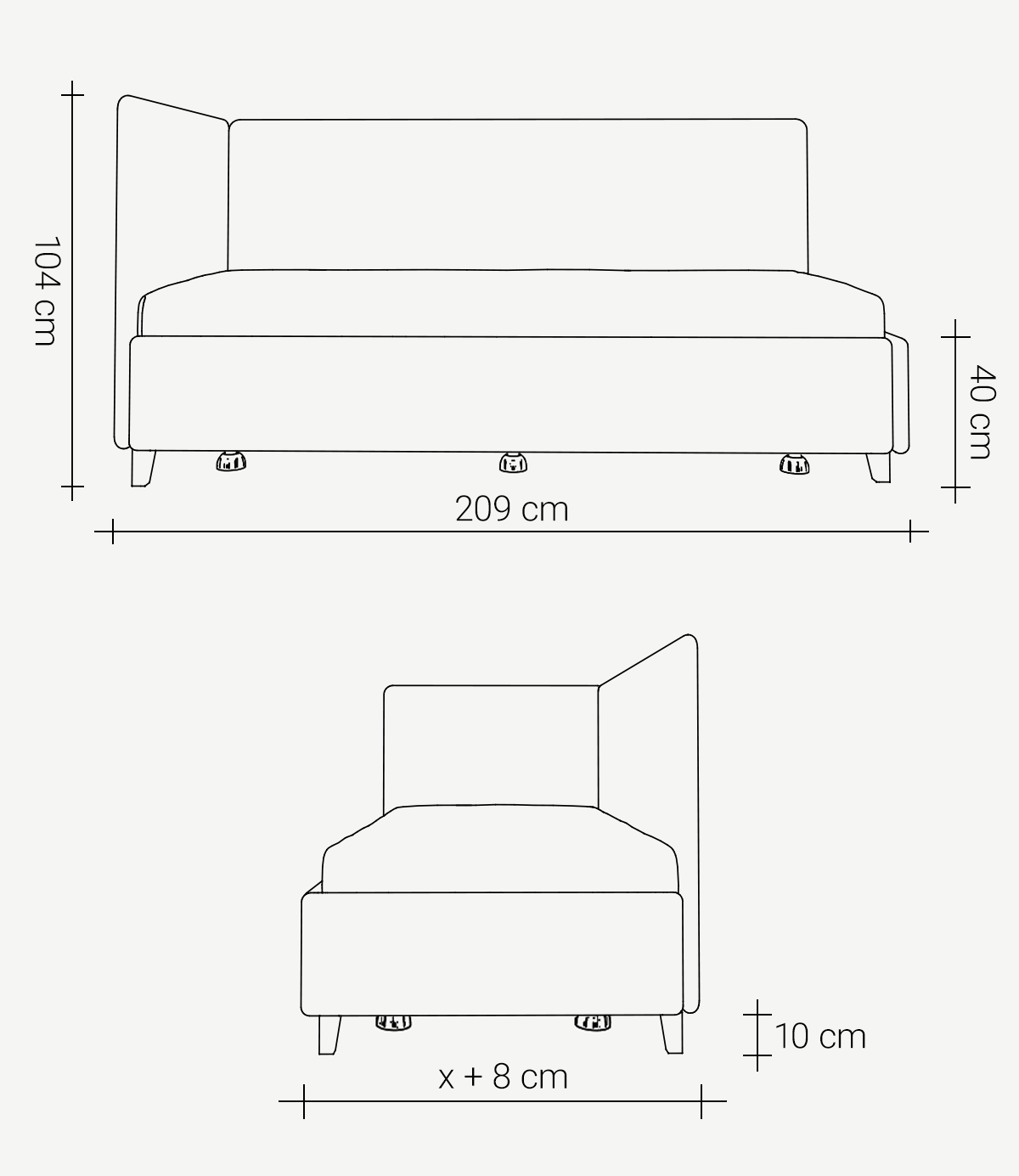 • Wymiary elementów tapicerowanych zakładają margines tolerancji +/- 1 cm.