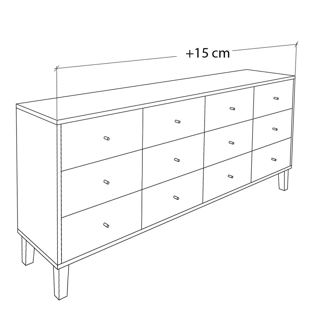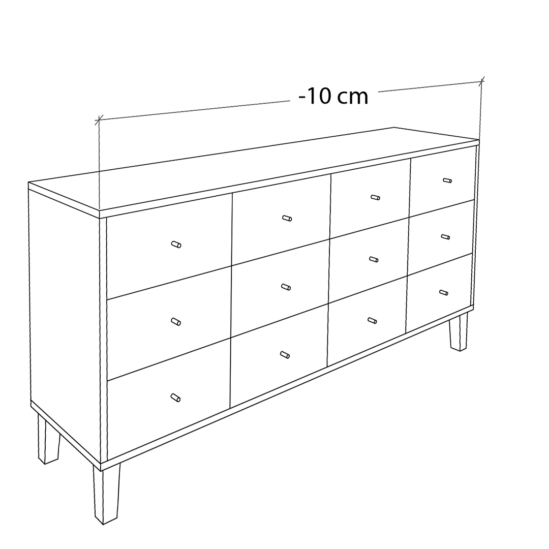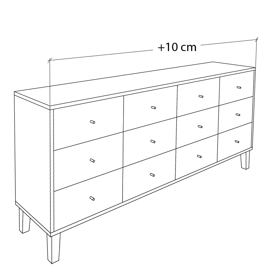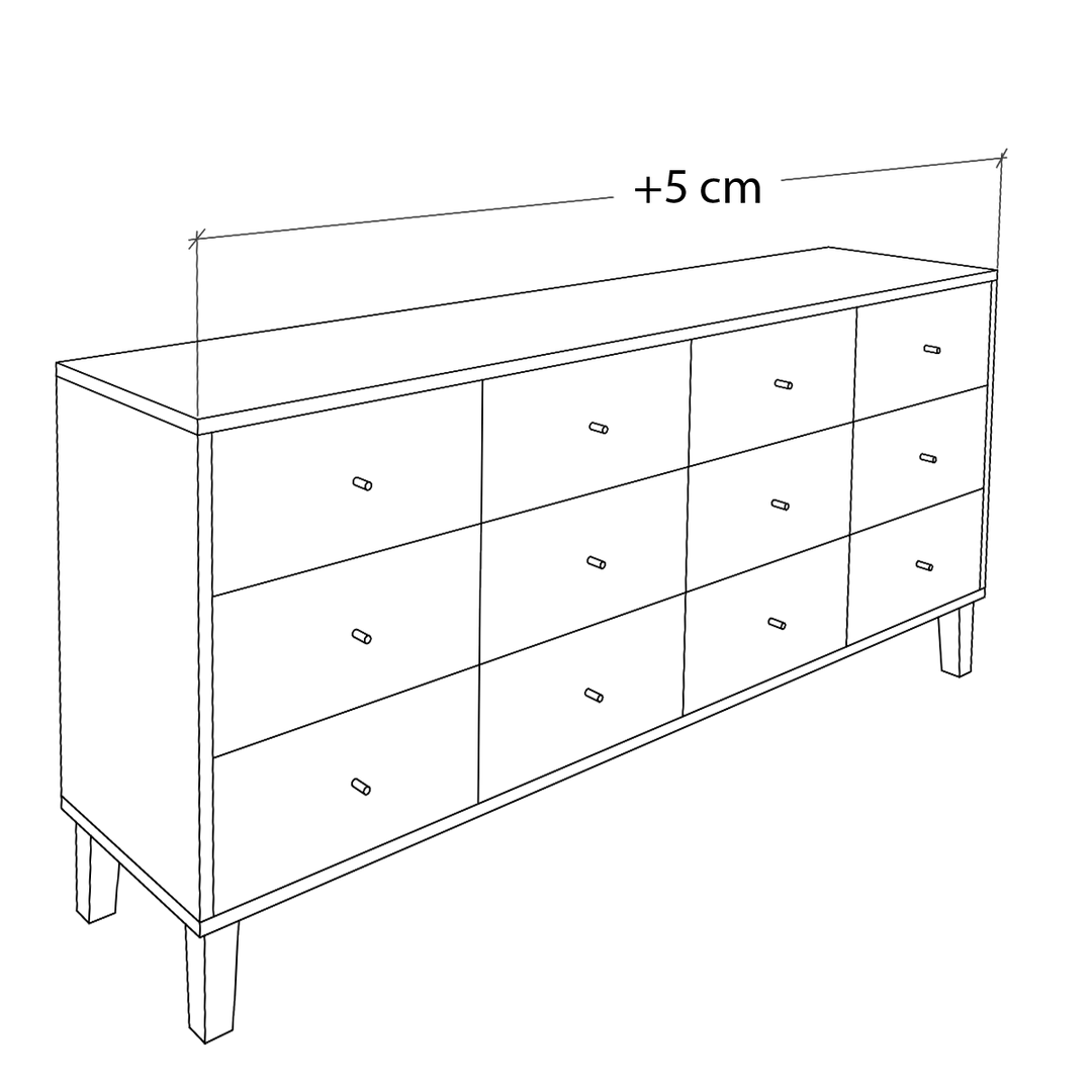 Dopracuj kompozycję Twojego wnętrza do perfekcji. Wybierz z 4 dostępnych wysokości i dopasuj komodę do Twojego wnętrza. Standardowa wysokość korpusu komody to 64 cm.