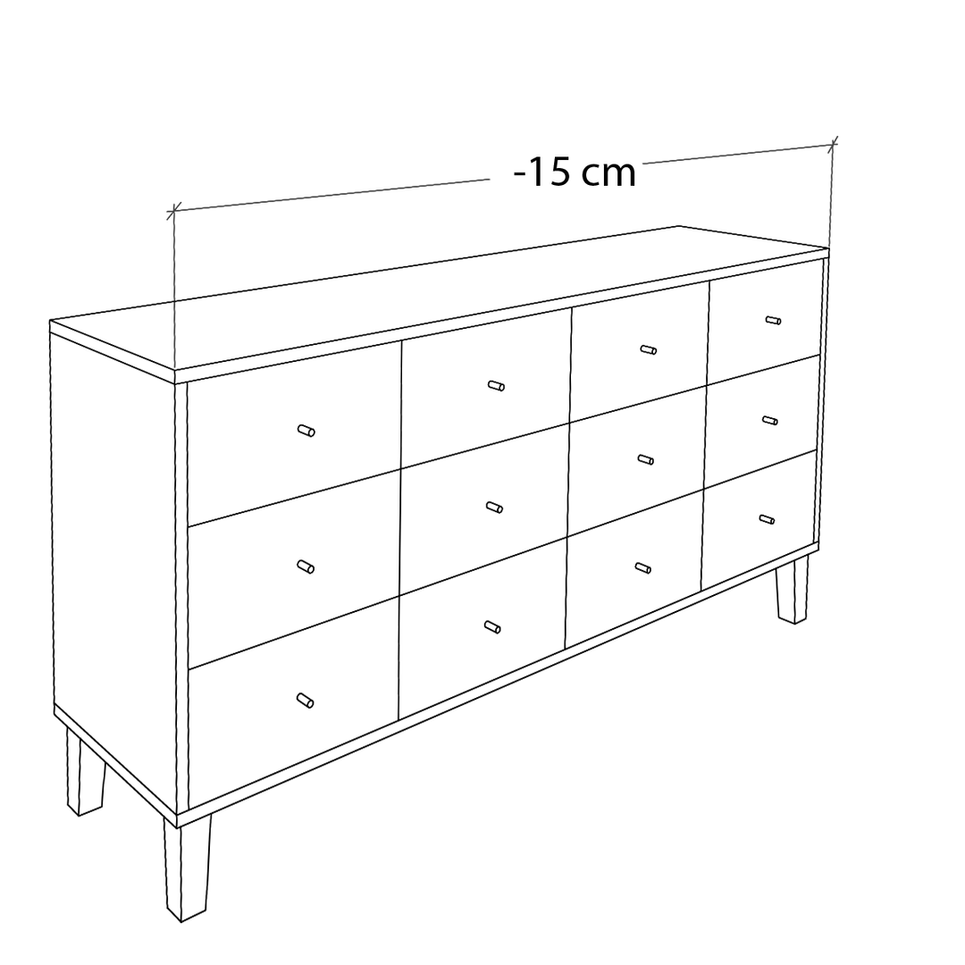 UWAGA: całkowita wysokość komody to wysokość korpusu + wysokość nóżek (15 cm)
