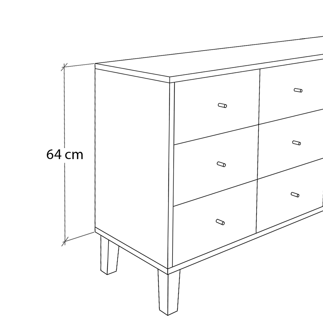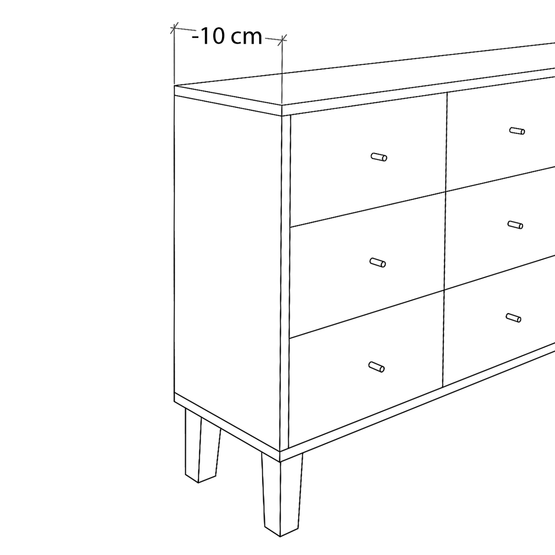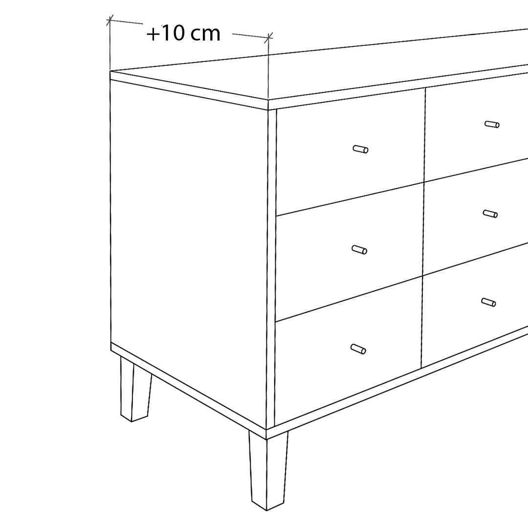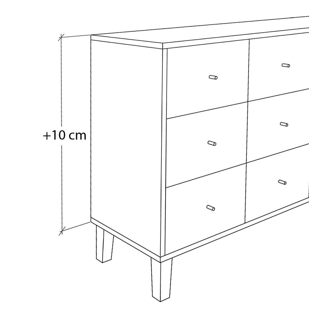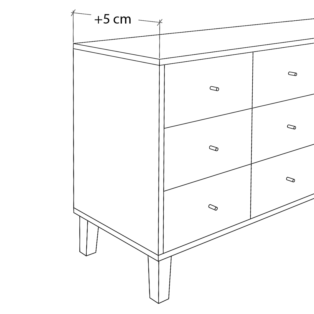 Dopracuj kompozycję Twojego wnętrza do perfekcji. Wybierz z 4 dostępnych wysokości i dopasuj komodę do Twojego wnętrza. Standardowa wysokość korpusu komody to 64 cm.