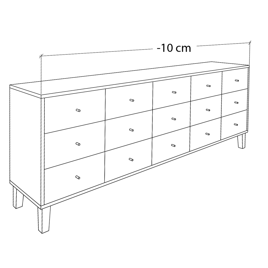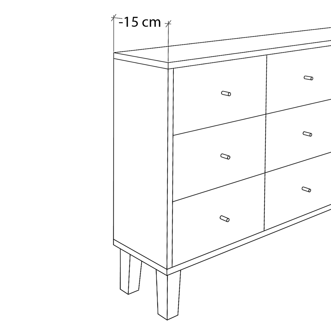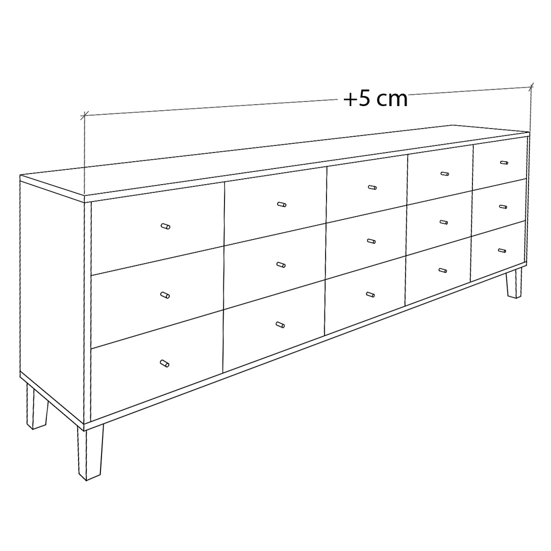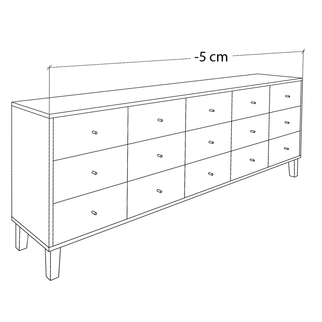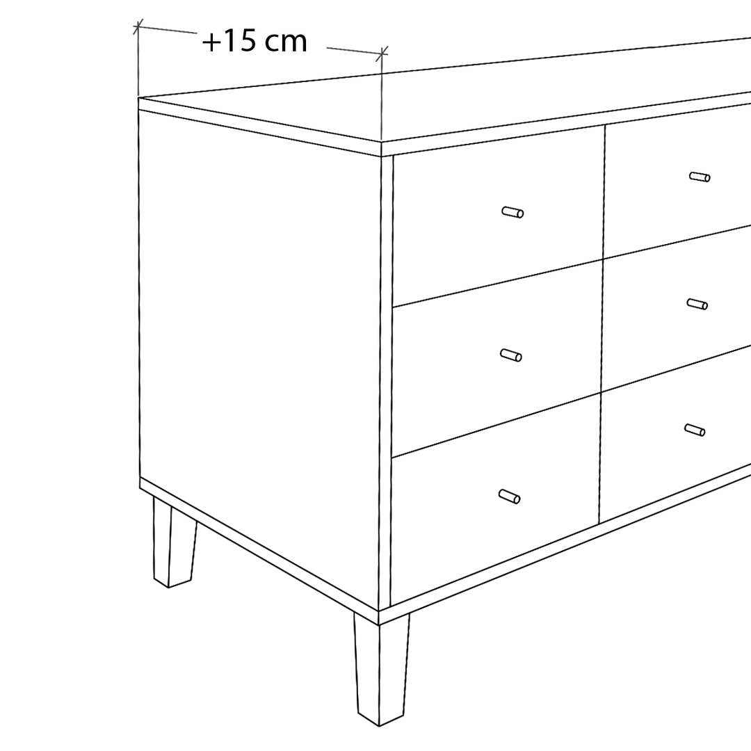 Dopracuj kompozycję Twojego wnętrza do perfekcji. Wybierz z 4 dostępnych wysokości i dopasuj komodę do Twojego wnętrza. Standardowa wysokość korpusu komody to 64 cm.