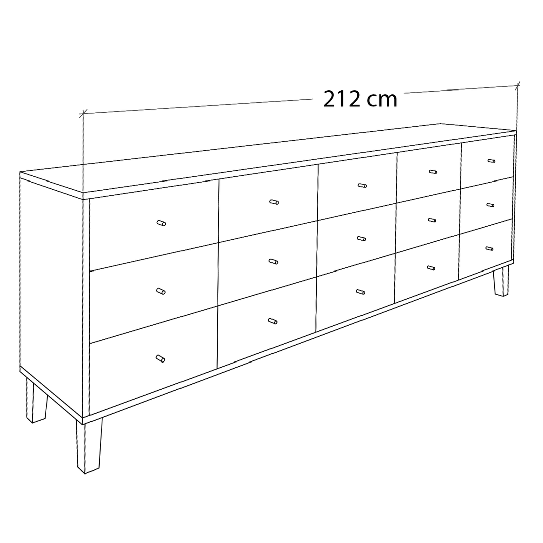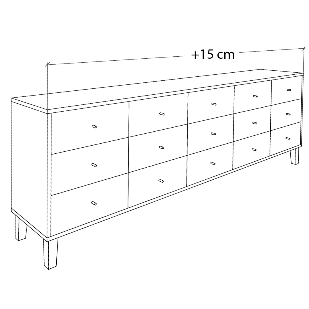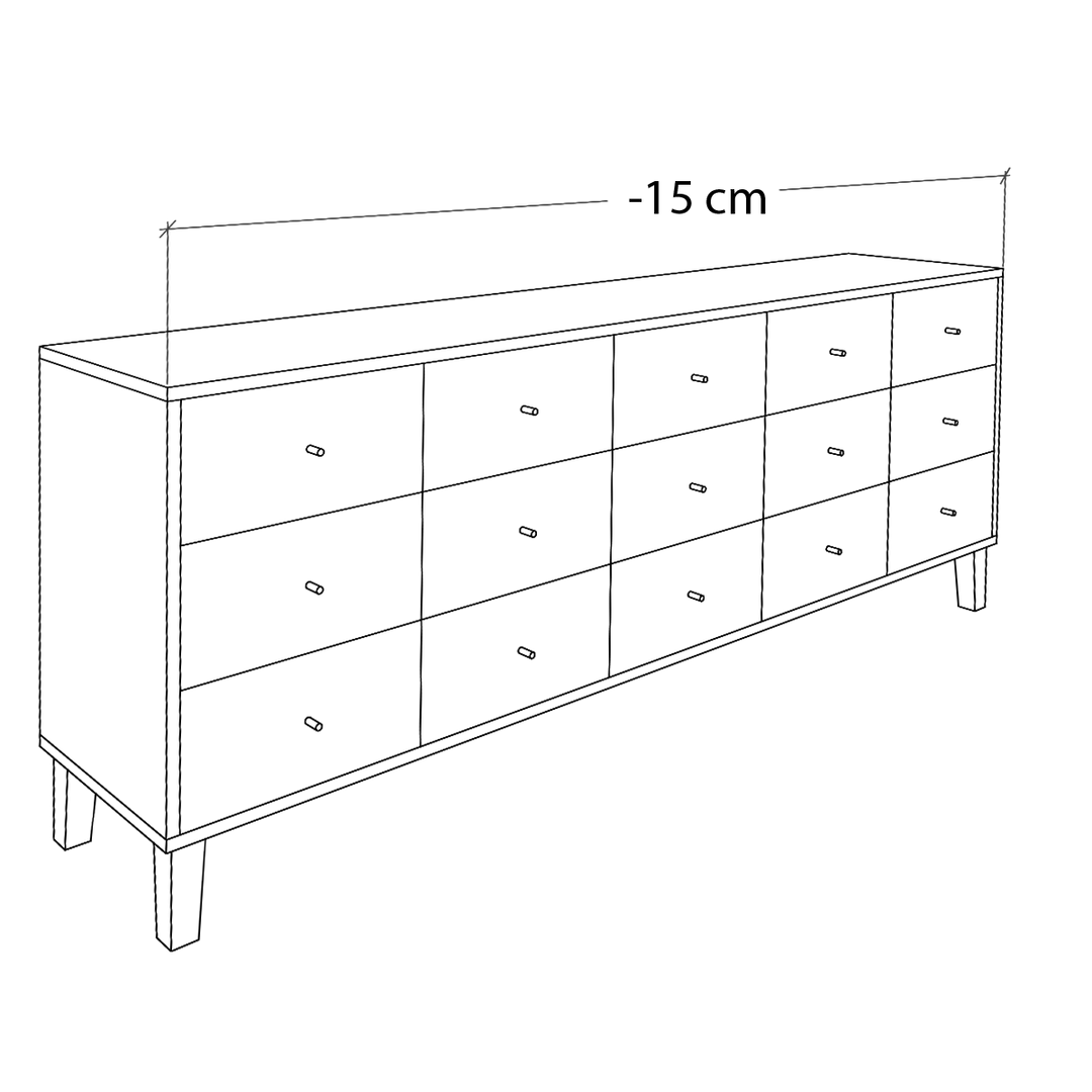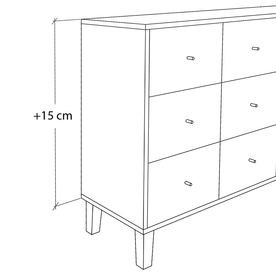 UWAGA: całkowita wysokość komody to wysokość korpusu + wysokość nóżek (15 cm)