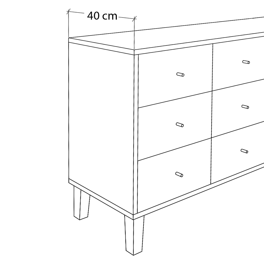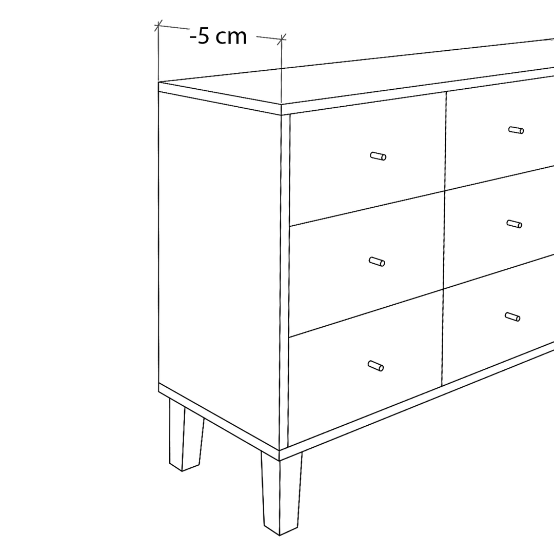 Większa szerokość komody równa się więcej miejsca do przechowywania. Zwiększając szerokość korpusu jednocześnie zwiększasz pojemność szuflad. Wykorzystaj dodatkowe centymetry w Twoim domu dopasowując szerokość komody do przestrzeni, w której się znajdzie.