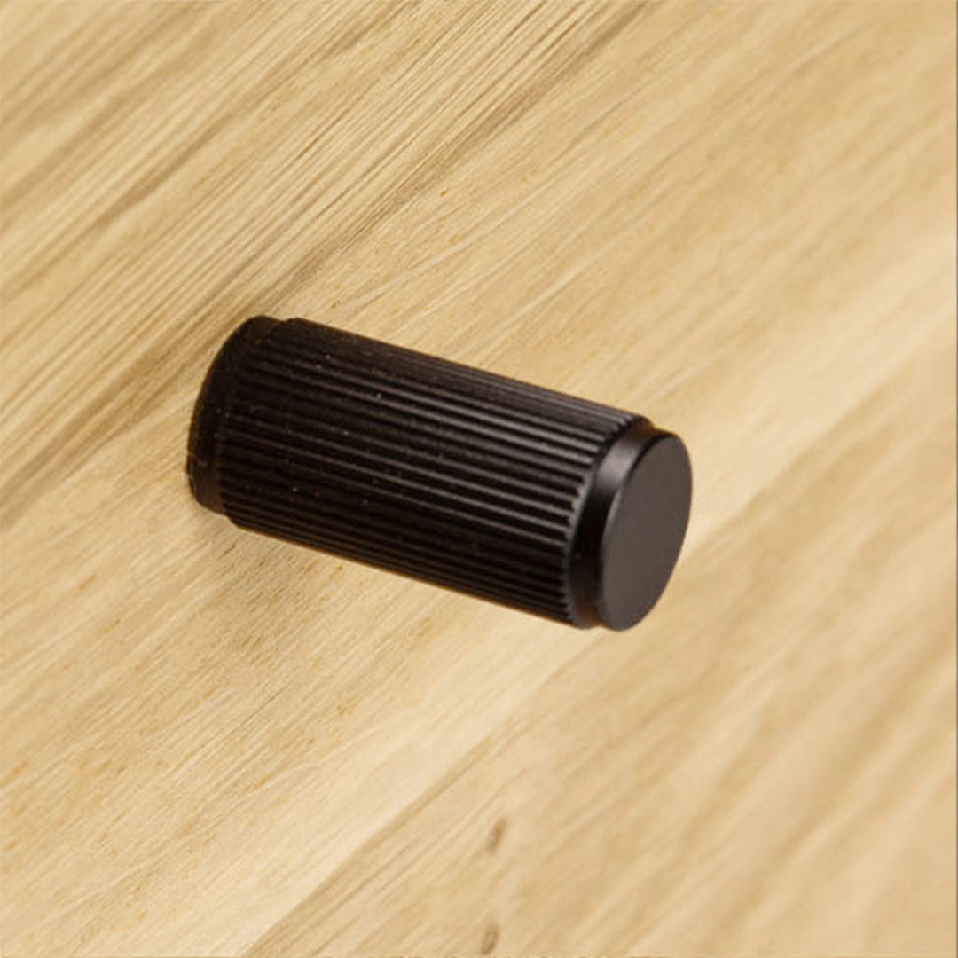Prosty w formie, metalowy uchwyt londyńskiej marki Buster + Punch podkreśla elegancki styl szafki nocnej.