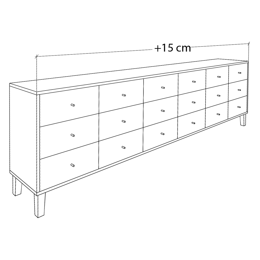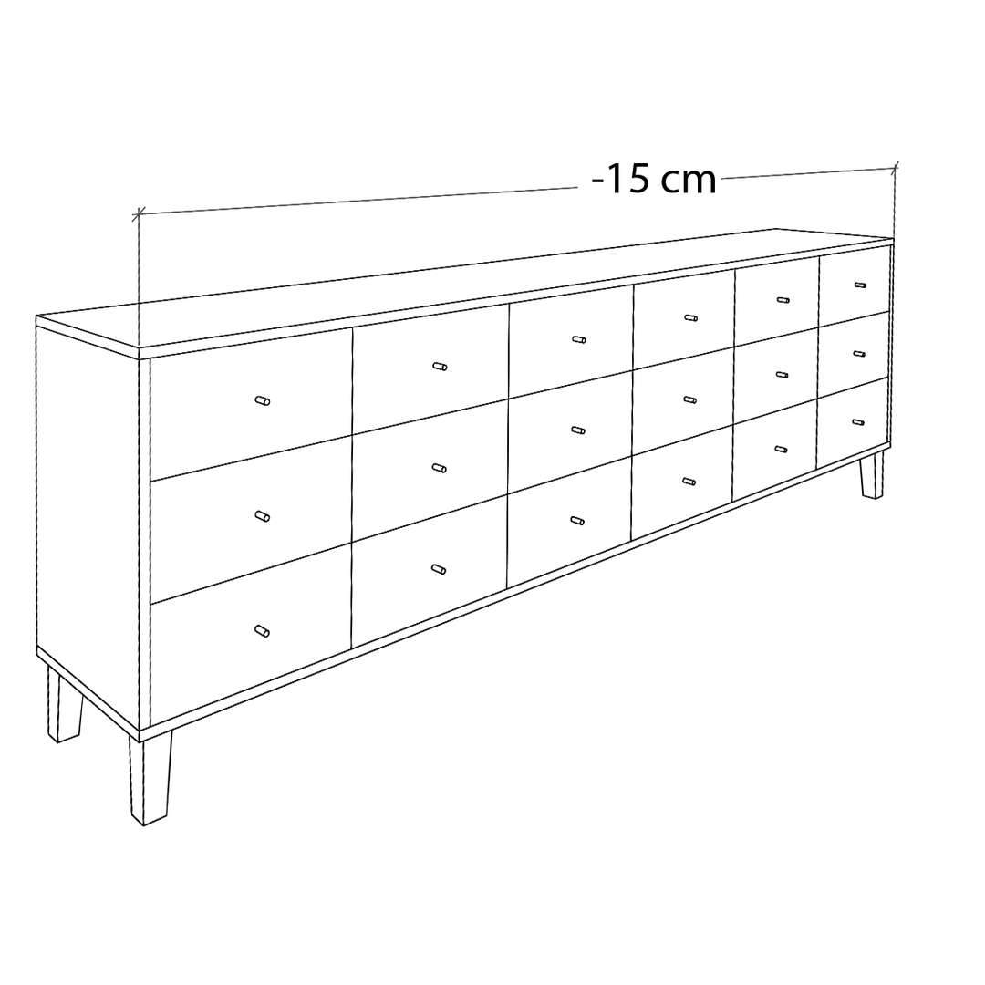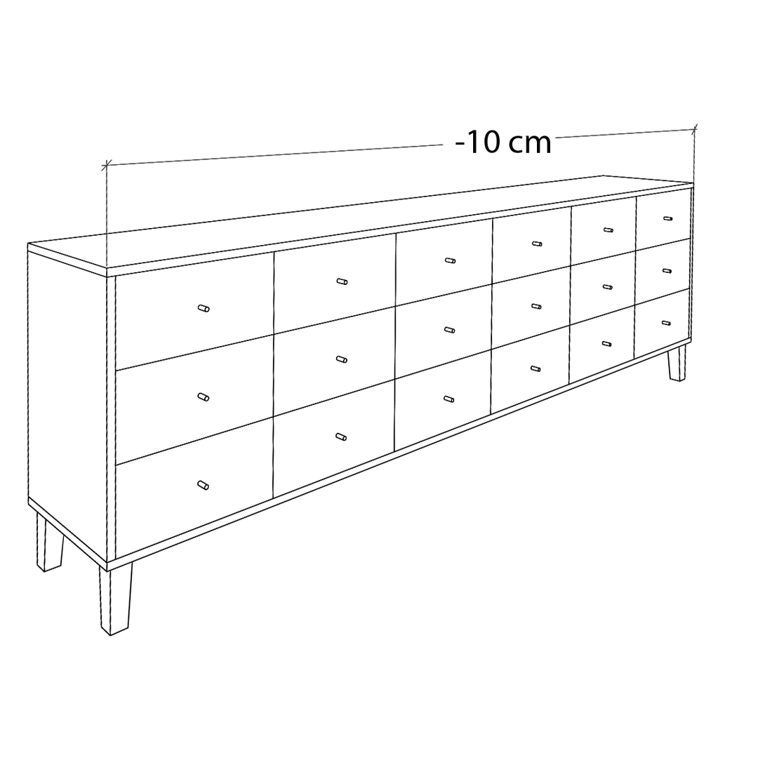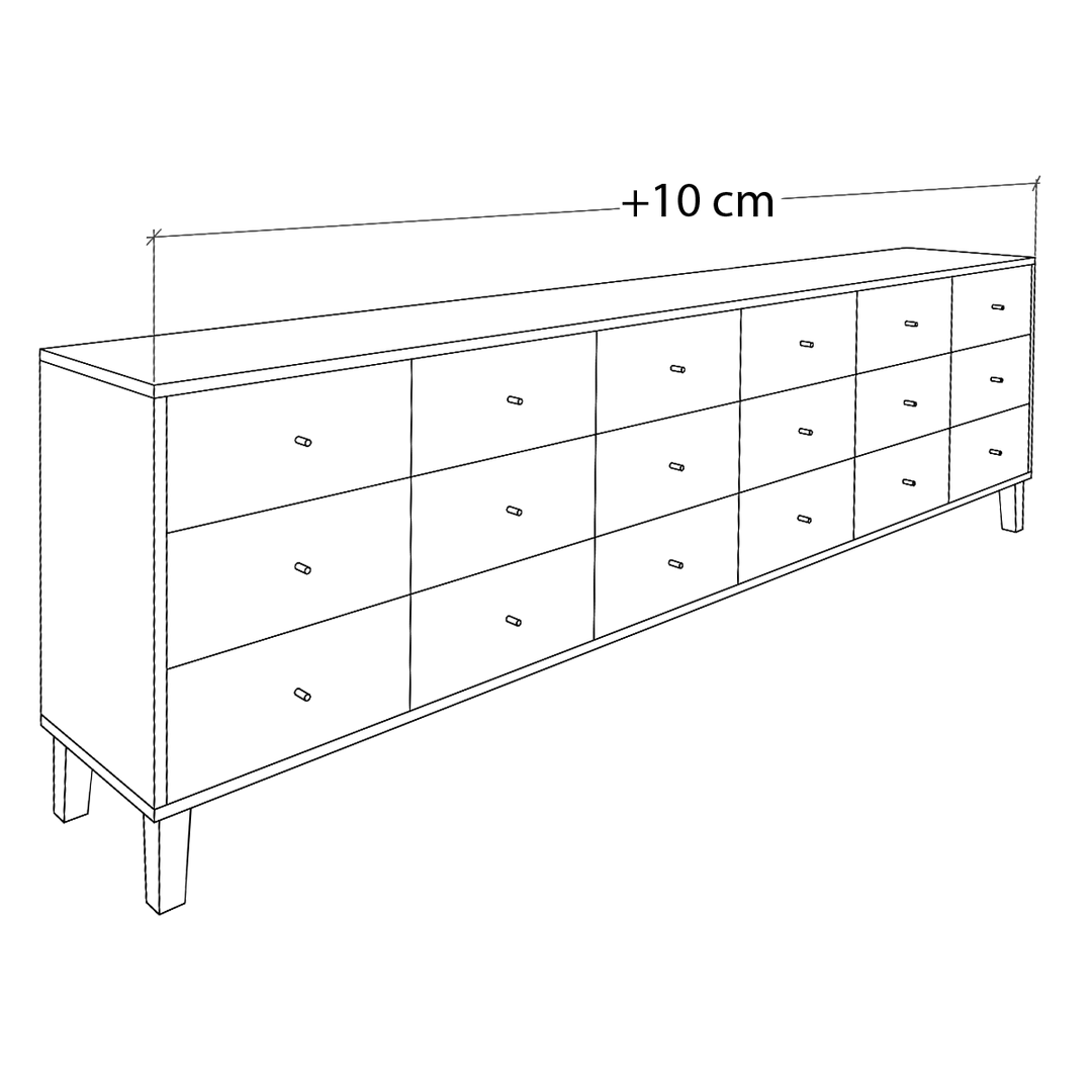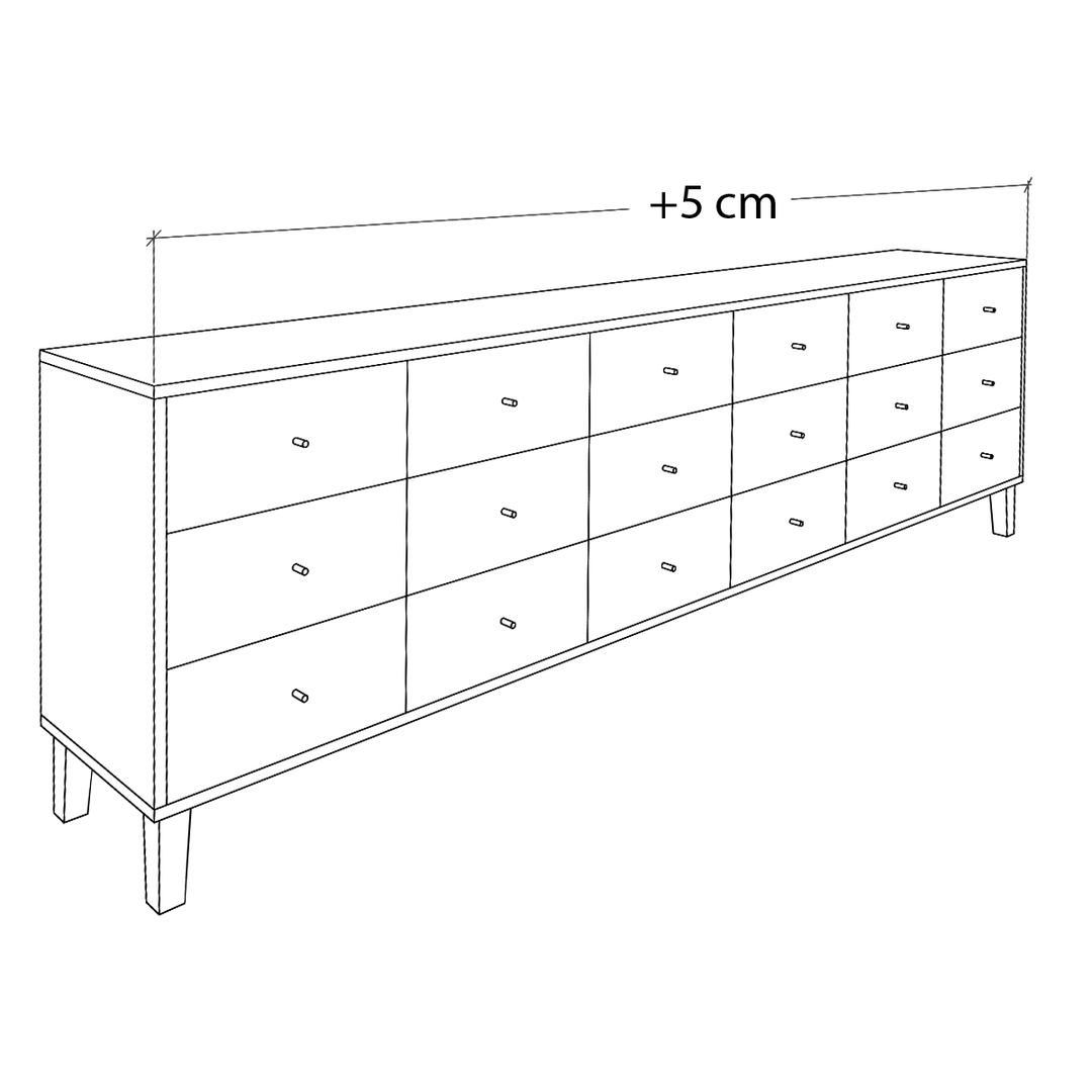 Dopracuj kompozycję Twojego wnętrza do perfekcji. Wybierz z 4 dostępnych wysokości i dopasuj komodę do Twojego wnętrza. Standardowa wysokość korpusu komody to 64 cm.