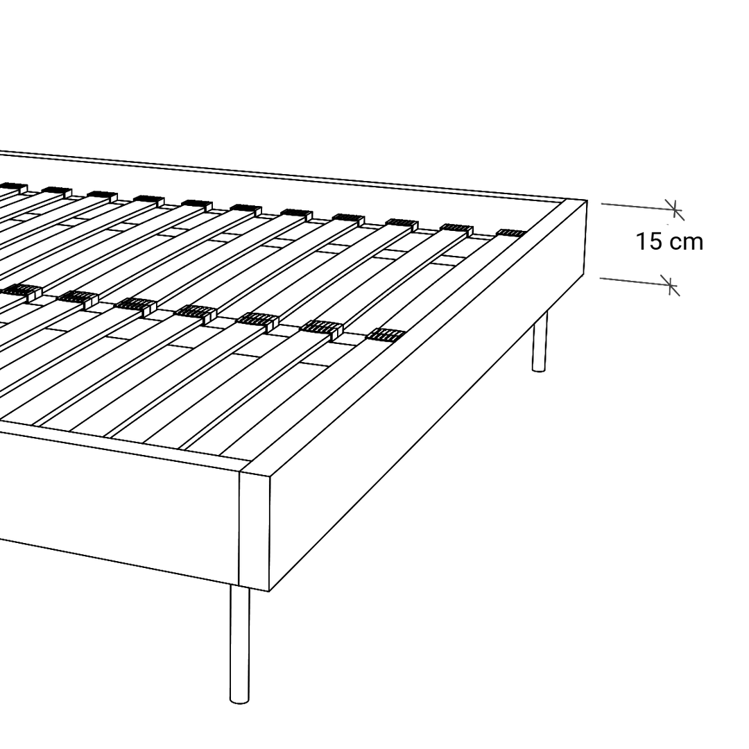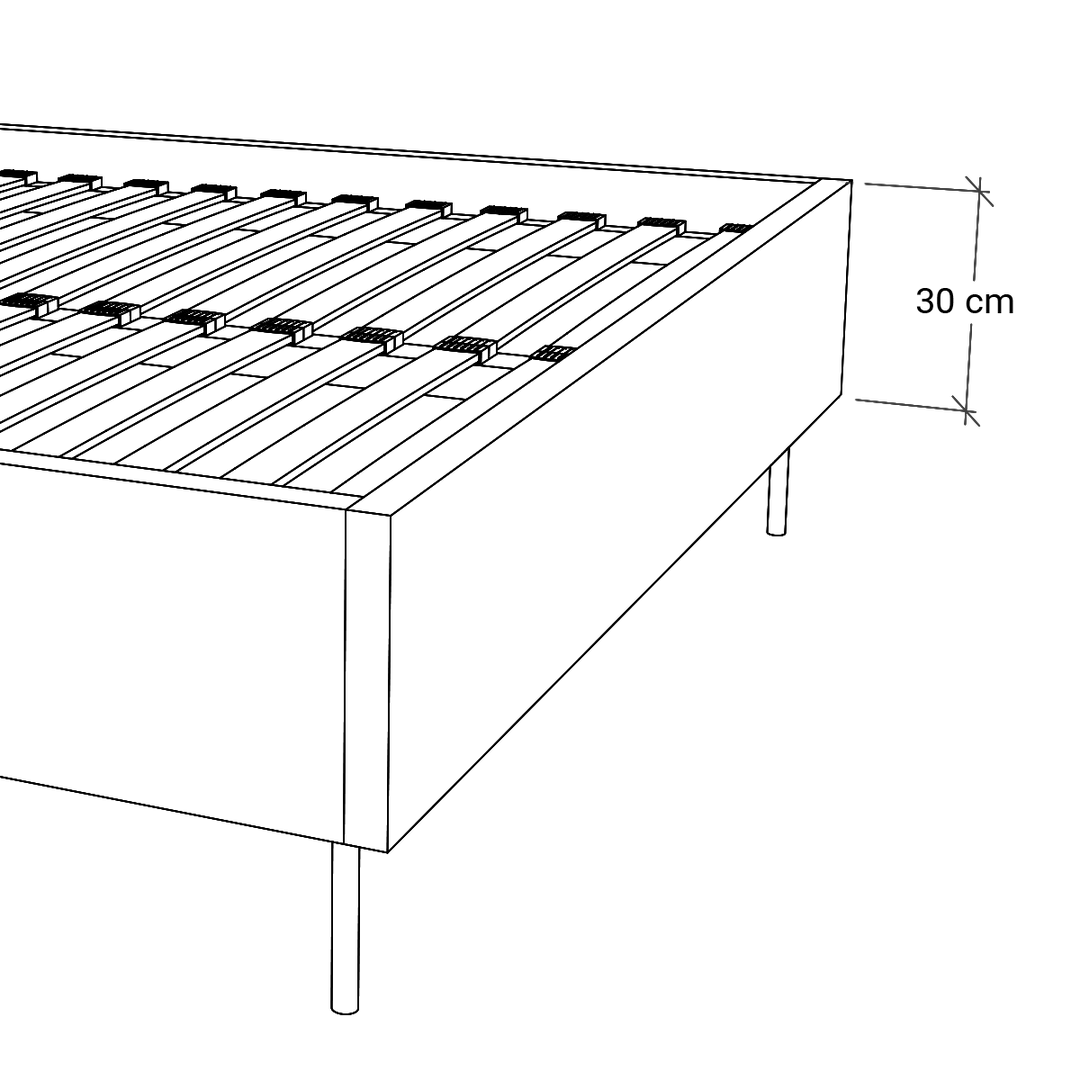 Wysokość ramy ma ogromny wpływ na ogólny odbiór łóżka. Im mniejsza wysokość ramy, tym łóżko jest lżejsze w odbiorze. Im wyższa rama, tym łóżko nabiera bardziej klasycznego, solidnego wyglądu. Wysokość ramy wpływa też znacząco na wysokość na jakiej znajdzie się górna krawędź materaca. Materac dla każdej wysokości ramy "wpada" na ~7 cm w ramę łóżka. W przypadku łóżek bez pojemnika możesz wybrać ramę o wysokości 10 cm, 15 cm, 30 cm lub 40 cm.
