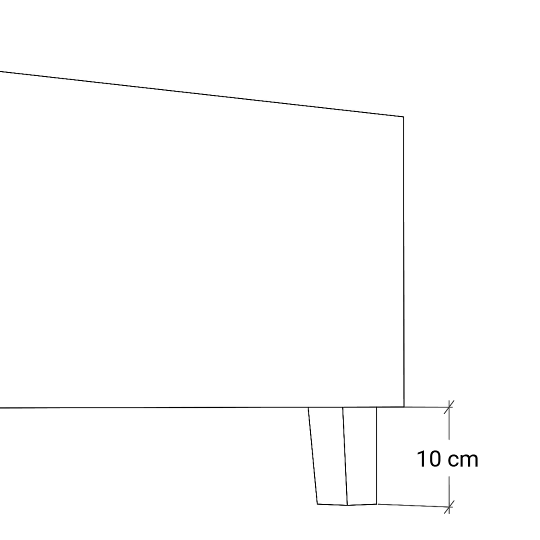 Nóżki o wysokości 10 cm i 15 cm nadają łóżku lekkości i funkcjonalności, gdyż ich wysokość pozwala na pracę robota sprzątającego pod łóżkiem. Dla tych wysokości nóżek dno pojemnika jest dodatkowo wsparte regulowanymi nóżkami meblowymi.