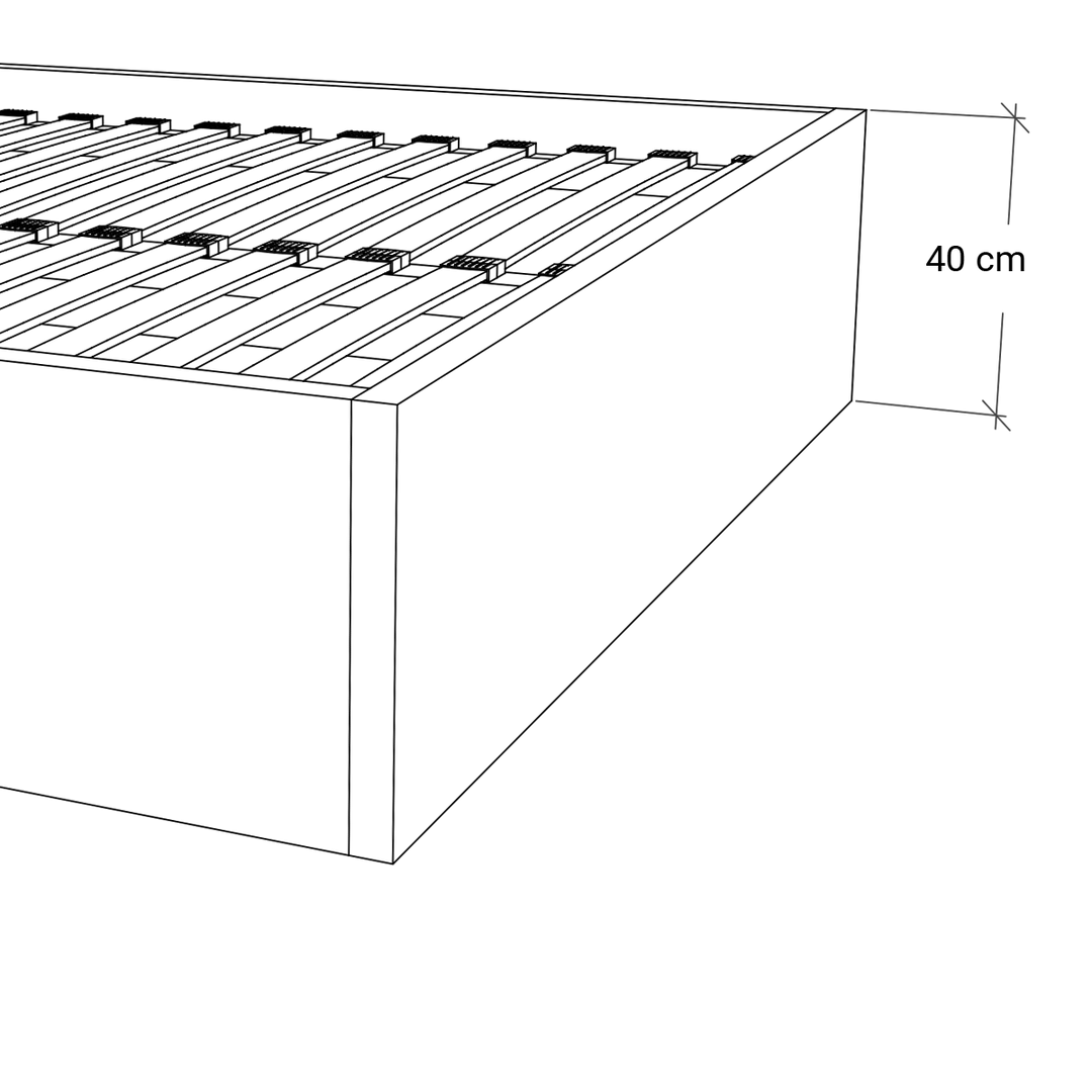 Wysokość ramy ma ogromny wpływ na ogólny odbiór łóżka. Im mniejsza wysokość ramy, tym łóżko jest lżejsze w odbiorze. Im wyższa rama, tym łóżko nabiera bardziej klasycznego, solidnego wyglądu. Wysokość ramy wpływa też znacząco na wysokość na jakiej znajdzie się górna krawędź materaca. Materac dla każdej wysokości ramy "wpada" na ~7 cm w ramę łóżka. W przypadku łóżek z pojemnikiem możesz wybrać ramę o wysokości 30 cm lub 40 cm.