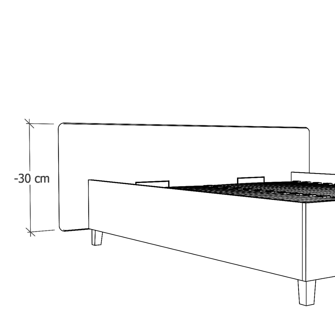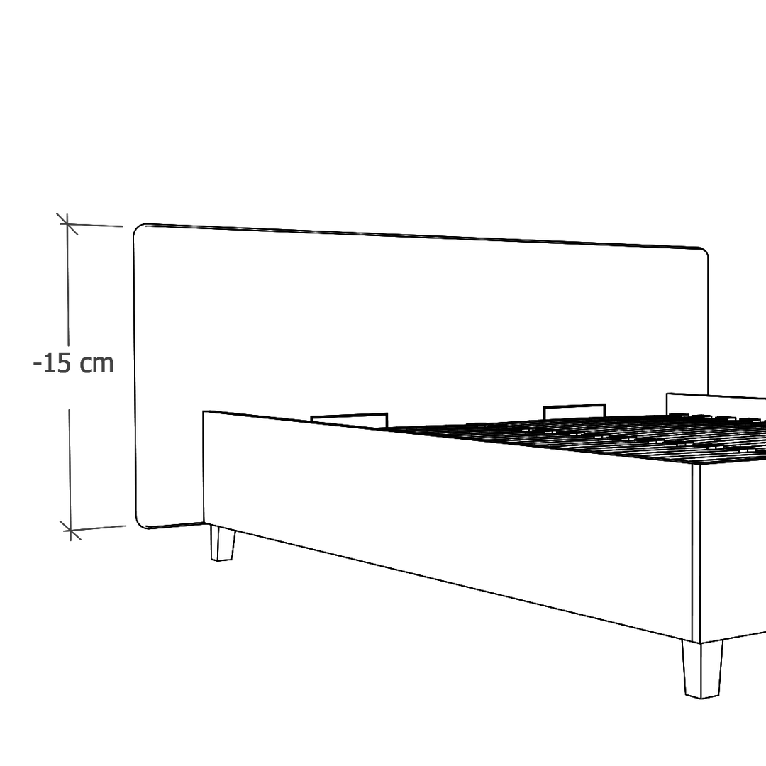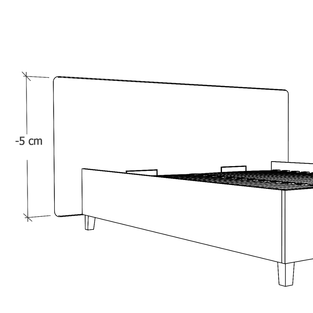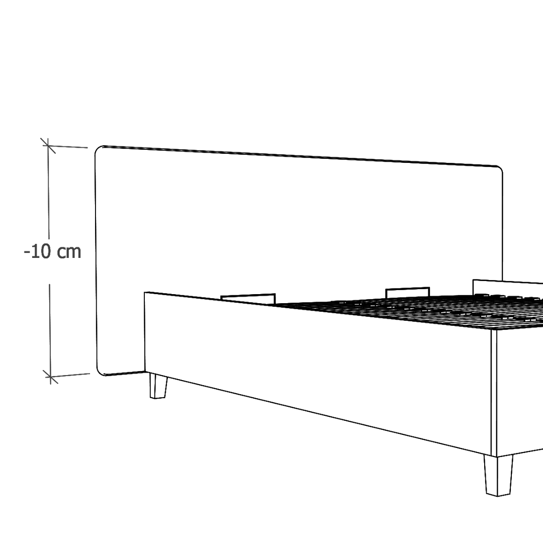 W modelach Slim oferujemy możliwość zlicowania wezgłowia z ramą łóżka. To modyfikacja, która jest odpowiednia do wąskich wnęk, w których stanie łóżko. (Pierwsza grafika: Standard, druga grafika: Zlicowane).