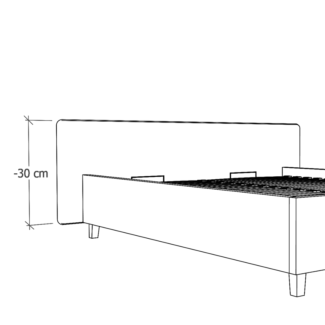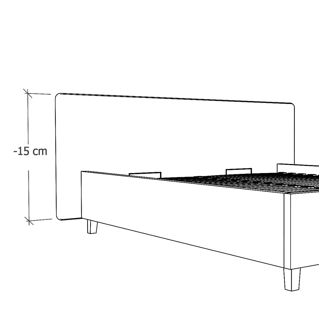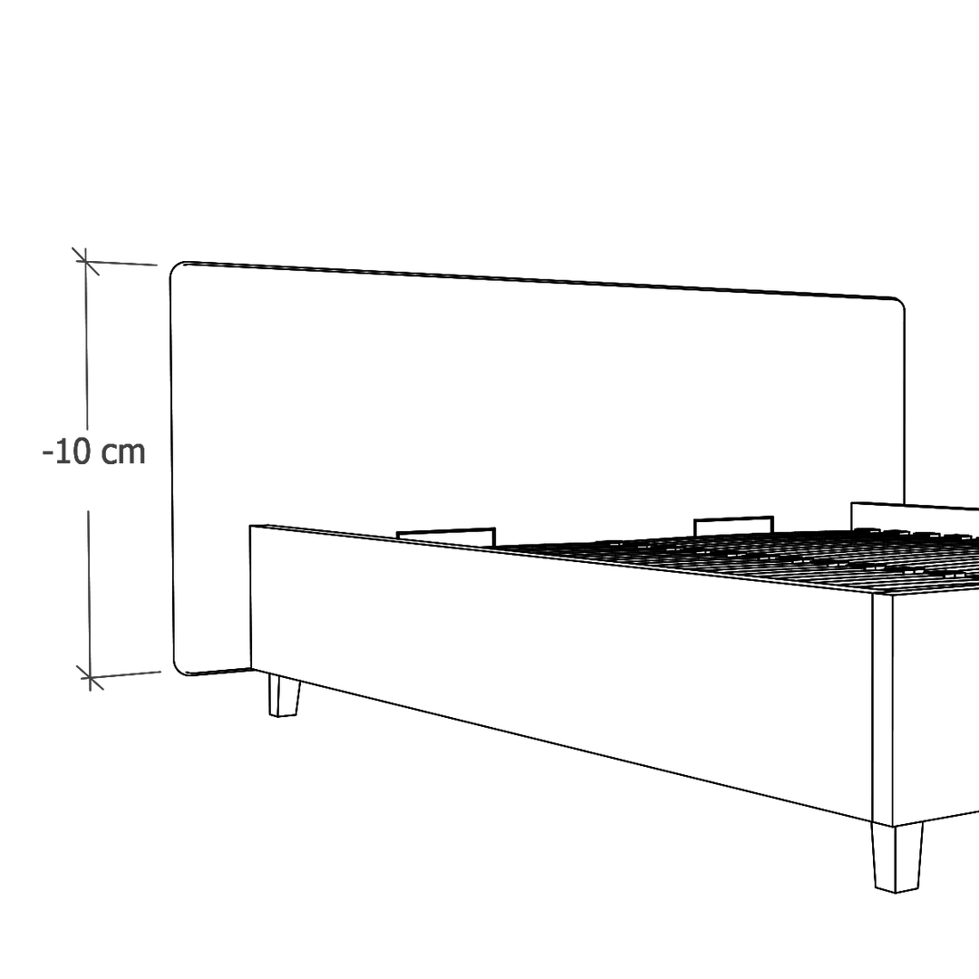 W modelach Slim oferujemy możliwość zlicowania wezgłowia z ramą łóżka. To modyfikacja, która jest odpowiednia do wąskich wnęk, w których stanie łóżko. (Pierwsza grafika: Standard, druga grafika: Zlicowane).