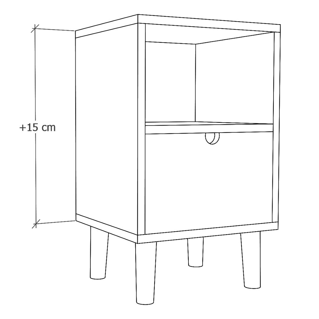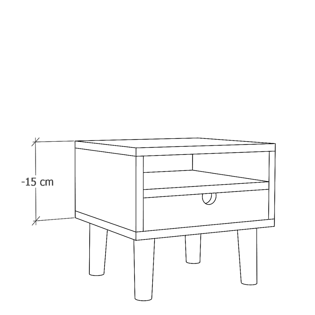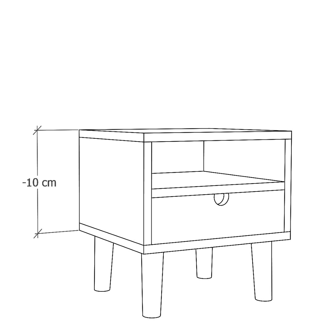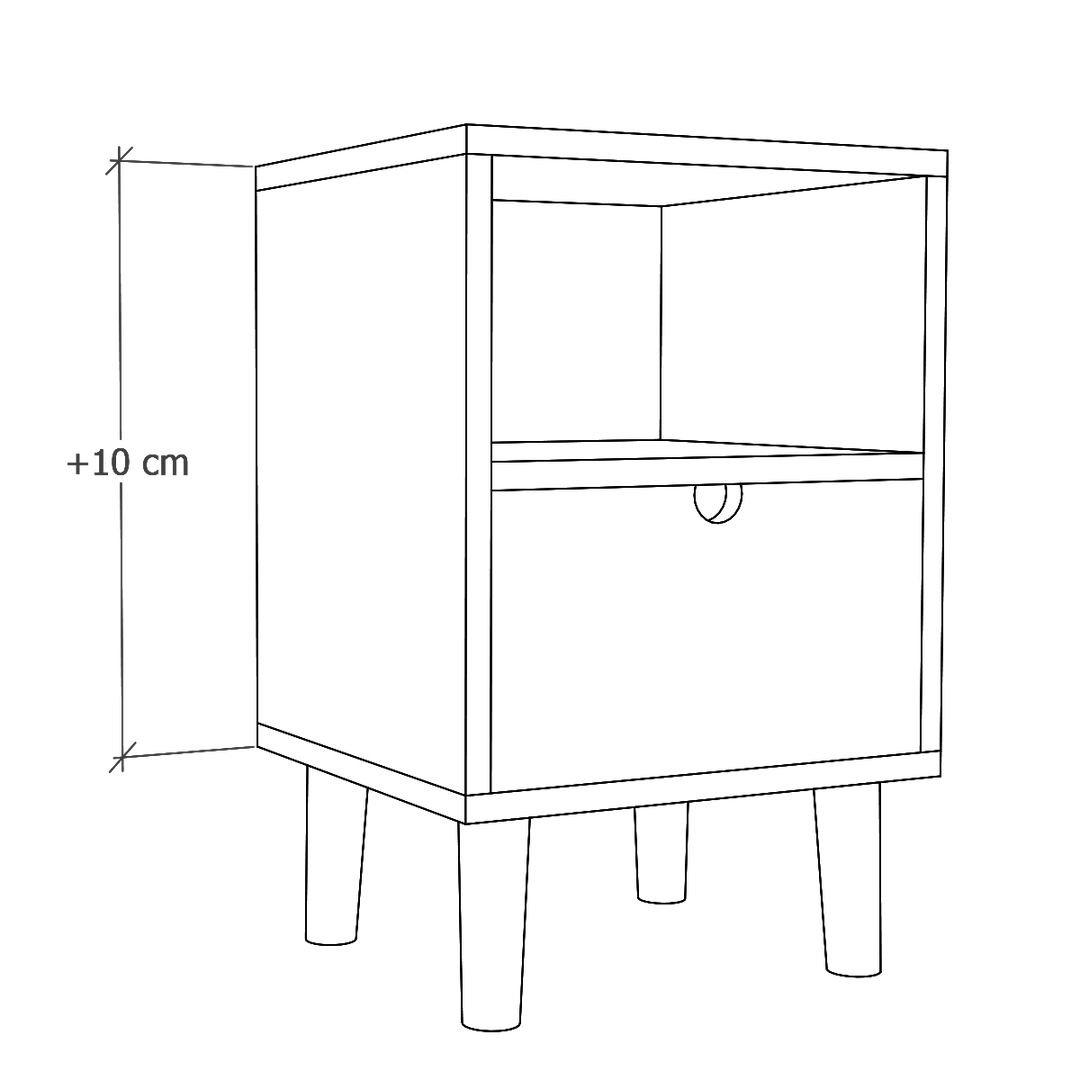 W zależności o tego, jak dużo miejsca do przechowywania potrzebujesz, możesz dobrać odpowiednią wysokość korpusu szafki nocnej. Wysokość stolika dopasuj do wysokości swojego łóżka.