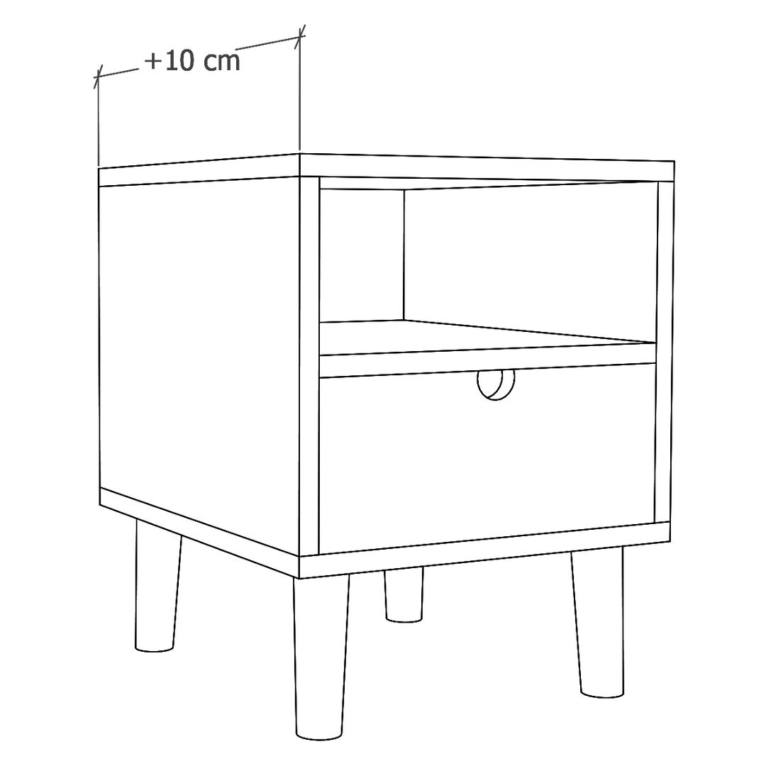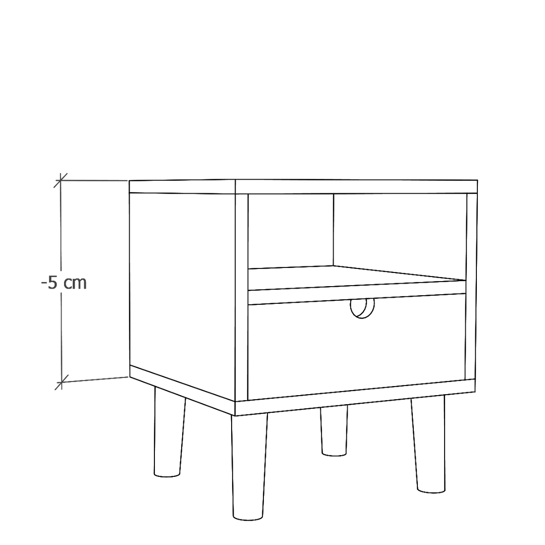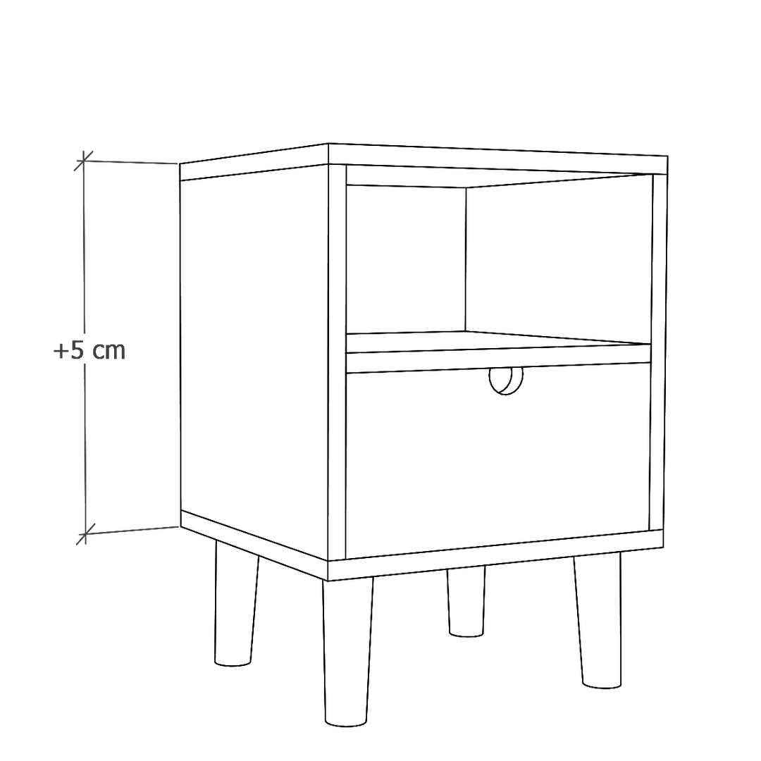 W zależności o tego, jak dużo miejsca do przechowywania potrzebujesz, możesz dobrać odpowiednią wysokość korpusu szafki nocnej. Wysokość stolika dopasuj do wysokości swojego łóżka.