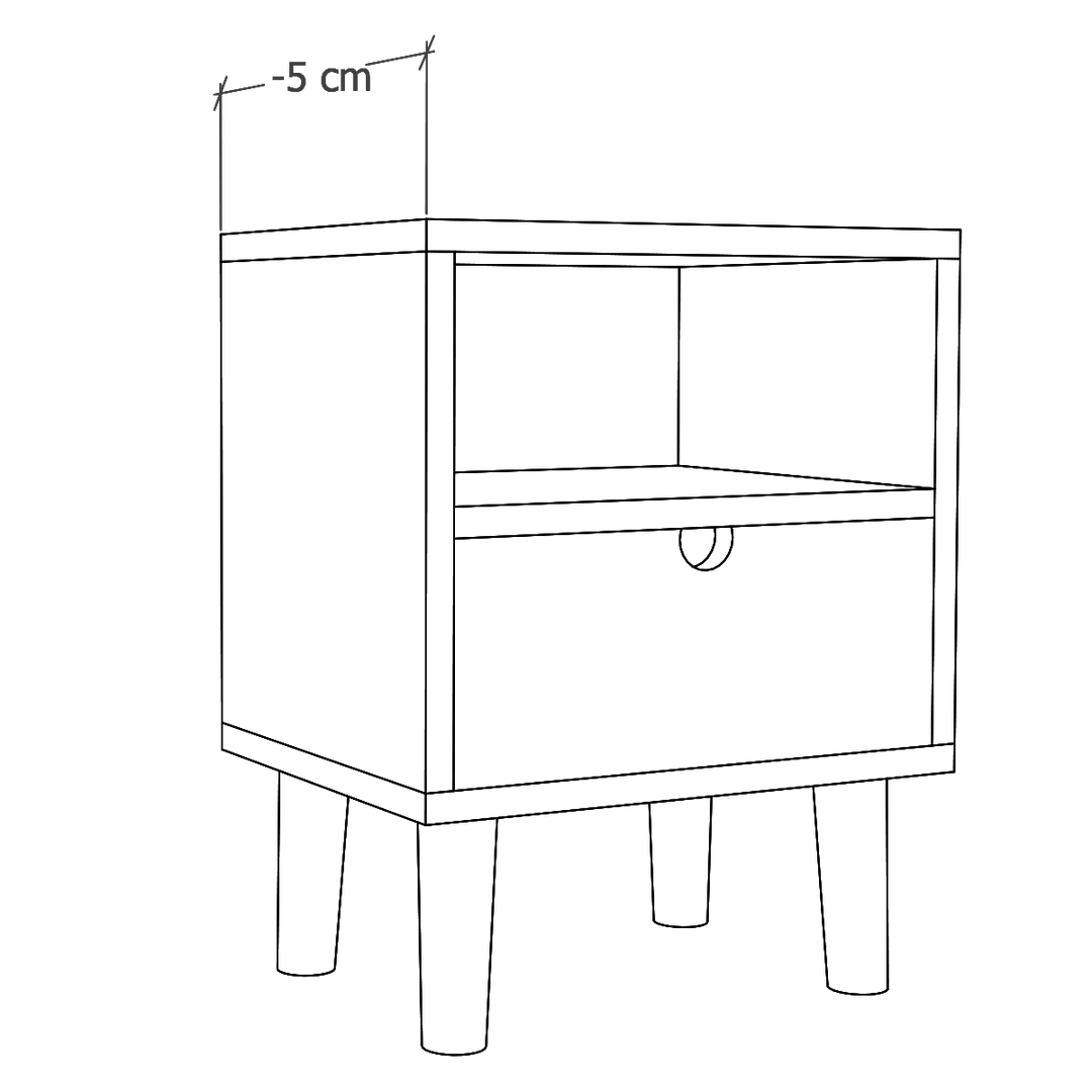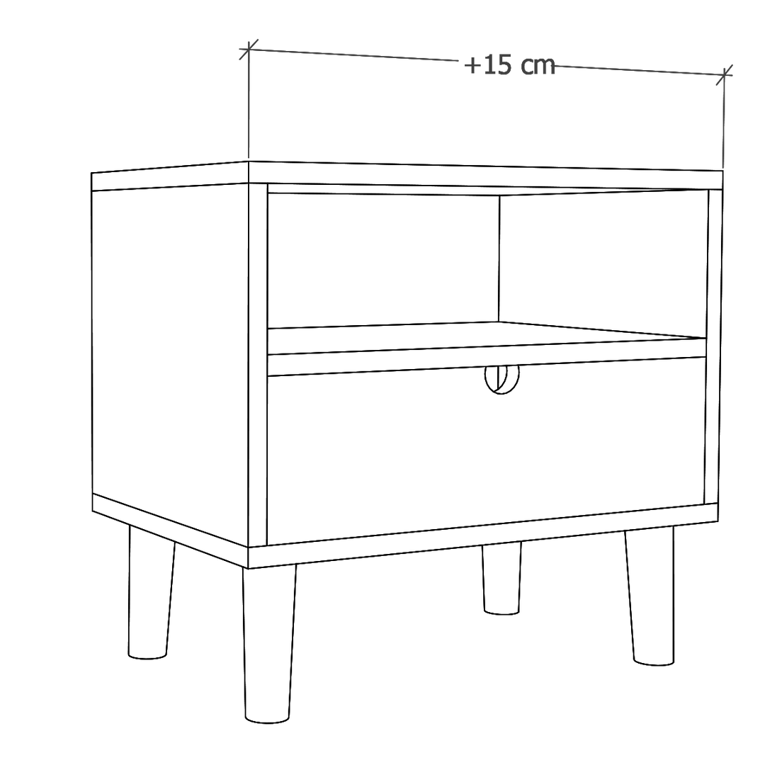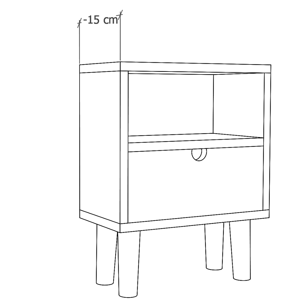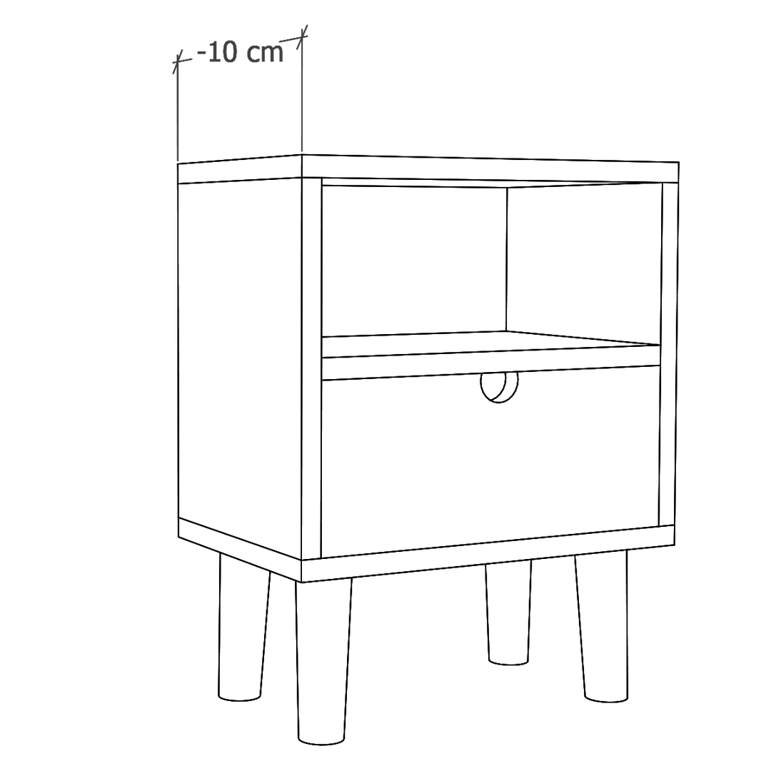 W zależności o tego, jak dużo miejsca do przechowywania potrzebujesz, możesz dobrać odpowiednią wysokość korpusu szafki nocnej. Wysokość stolika dopasuj do wysokości swojego łóżka.