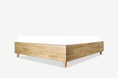 Dębowe łóżko z pojemnikiem pod panele tapicerowane. Ceniony minimalizm, czyli elegancja w prostej formie.