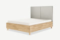 Nami dębowe łóżko z pojemnikiem i zagłówkiem w formie 2 paneli tapicerowanych